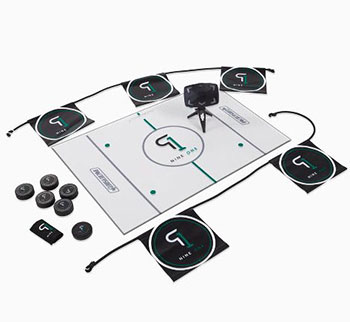 Desarrollado por HockeyShot en colaboración con la estrella del hockey Tyler Seguin, el kit de tiro Nine One te ofrece todo lo necesario para llevar tu puntería a un nivel superior y marcar más goles que nunca, tanto si eres un jugador prometedor como un profesional experimentado. Mejora la potencia de tu tiro: El kit de tiro HockeyShot Nine One te permite trabajar específicamente la potencia de tu tiro. Los cinco discos estándar incluidos te permiten practicar repetidamente y aumentar tu potencia de forma continua. Precisión y técnica: La precisión de tu tiro es crucial para el éxito en el hockey. El disco Dryland Speedpuck incluido en el kit te permite mejorar tu precisión, mientras que la almohadilla de tiro Nine One proporciona una superficie ideal para perfeccionar tu técnica. Acelera tu tiempo de reacción: Las reacciones rápidas son esenciales en el hockey. El peso Nine One Stickhandling ayuda a mejorar tu coordinación ojo-mano y tu tiempo de reacción, impactando directamente en tu puntería. Ponte a prueba con las dianas Nine One Extreme: El kit incluye cinco dianas Nine One Extreme, que permiten una gran variedad de prácticas de tiro. Estas dianas pondrán a prueba tu precisión y te ayudarán a perfeccionar tu tiro. Entrena como un profesional con el Reactive Sniper: El Reactive Sniper es uno de los elementos estrella del kit de tiro Nine One. Este innovador dispositivo de entrenamiento pone a prueba tu velocidad y precisión de tiro, moviéndose y midiendo tus reacciones en tiempo real. Simula los desafíos de un partido real y te ayuda a mejorar tu puntería bajo presión. El kit de tiro Hockeyshot Nine One incluye: 5 discos estándar, 1 disco de velocidad para entrenamiento en seco, 1 alfombrilla de tiro Nine One de 60,96 cm x 91,44 cm (24" x 36"), 1 peso para manejo de stick Nine One, 5 dianas Nine One Extreme y 1 Reactive Sniper.